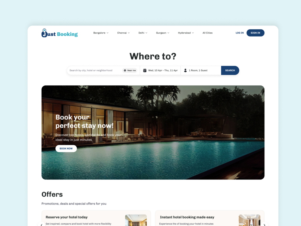 Check out landing page for hotel and deals booking